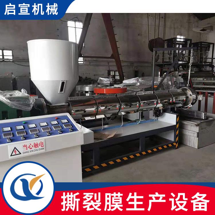 啟宣機械生產(chǎn)的撕裂膜生產(chǎn)線是以各類樹脂為原料,經(jīng)配色、擠出、切割、牽引